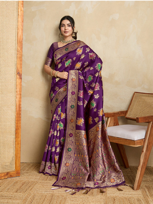 Woven, Embellished, Self Design Banarasi Pure Silk Saree (Pink & Purple) Pack of 2